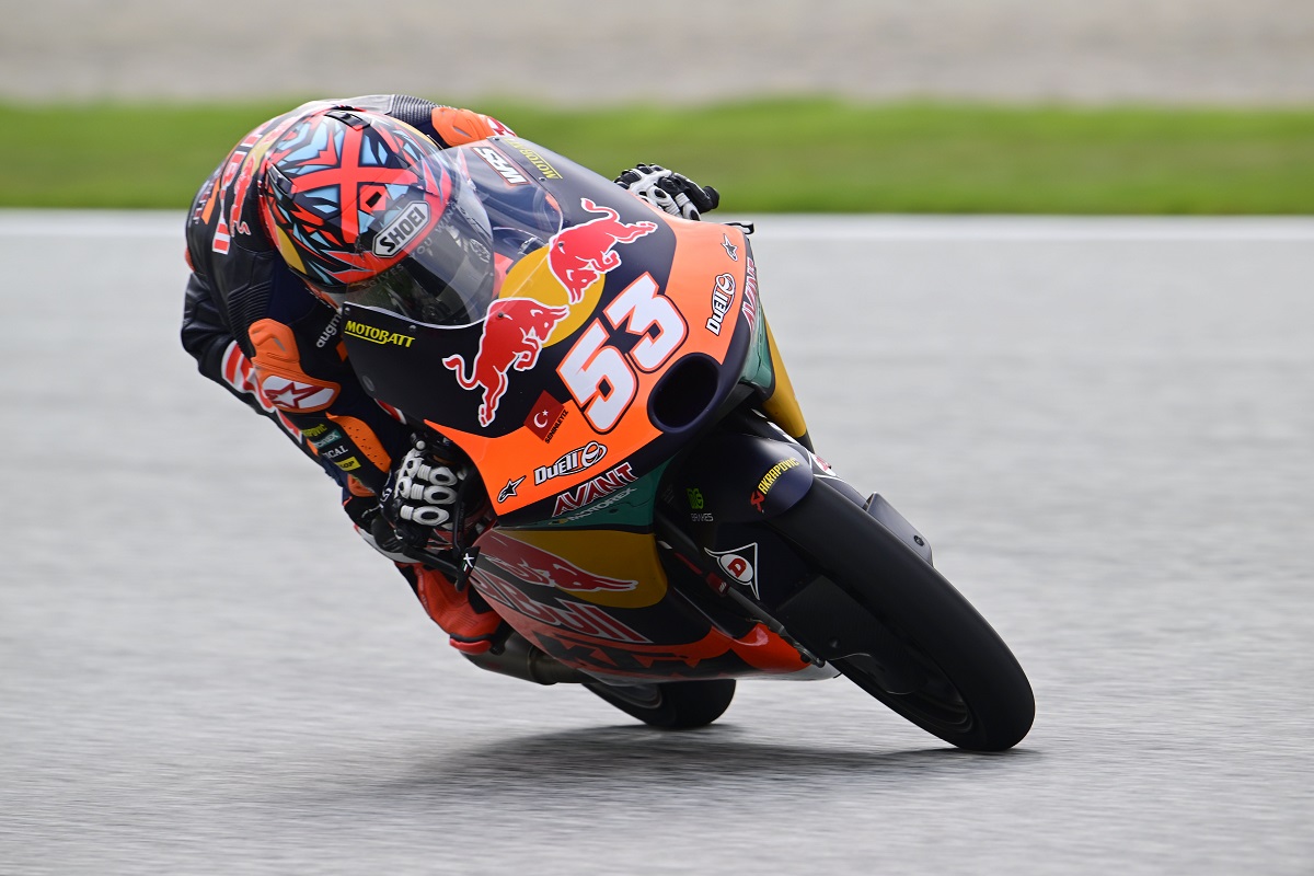 The championship leader was keen to keep his Tech 3-run KTM at the head of the pack though and dived back through at Turn 3, Oncu then getting a run on his fellow KTM ace on the run to Turn 4 – before Sasaki surprised the pair by scything back past into the lead into the bend.