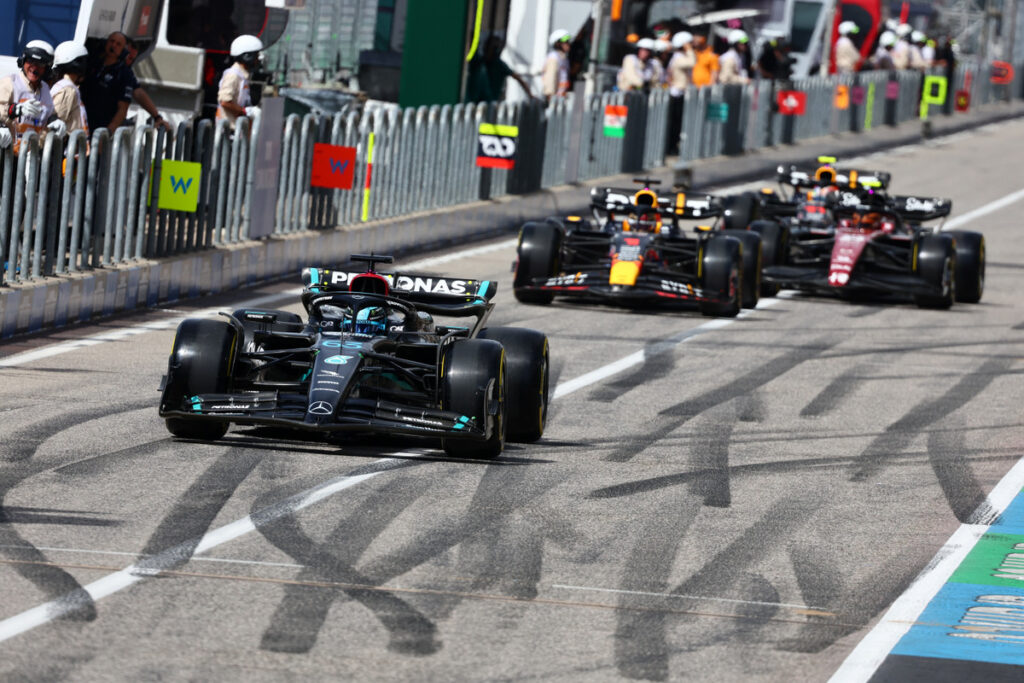 “The Stewards heard from the driver of Car 63 (George Russell), the driver of Car 16 (Charles Leclerc), team representatives and reviewed positioning/marshalling system data, video, timing team radio and in-car video evidence,” the Steward’s report read.